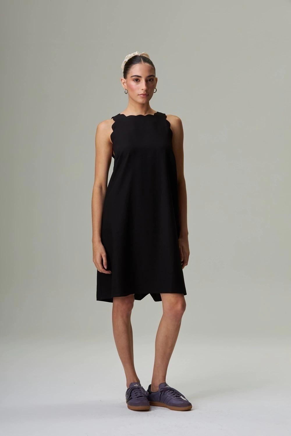 Feito em tecido de viscose, ele tem modelagem ampla e fluida, que proporciona conforto e movimento ao longo do dia — perfeito para o verão ou dias que pedem frescor. O grande diferencial está nos delicados acabamentos ondulados na gola e nas cavas, que adicionam um toque sutil de feminilidade e originalidade ao visual.